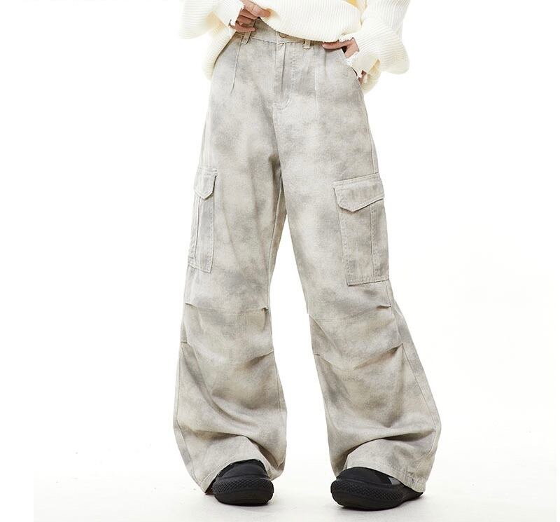 Vintage Loose Tie-Dye Wide-Leg Cargo Pants
