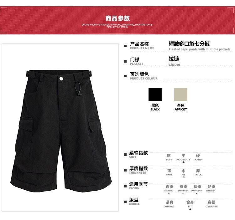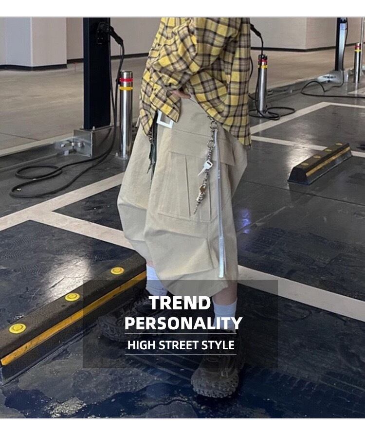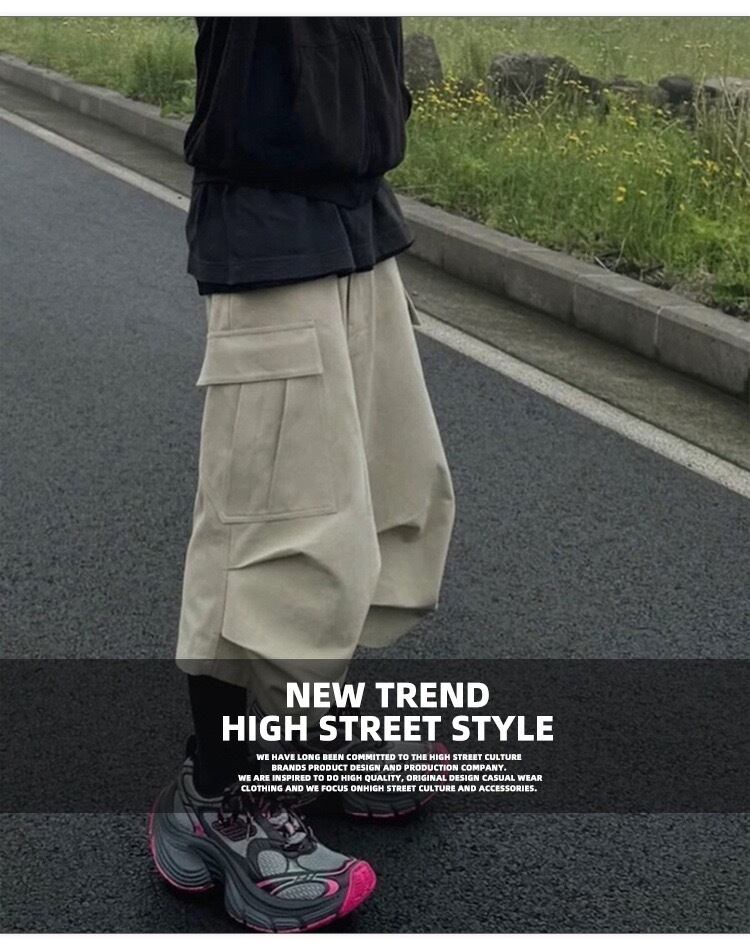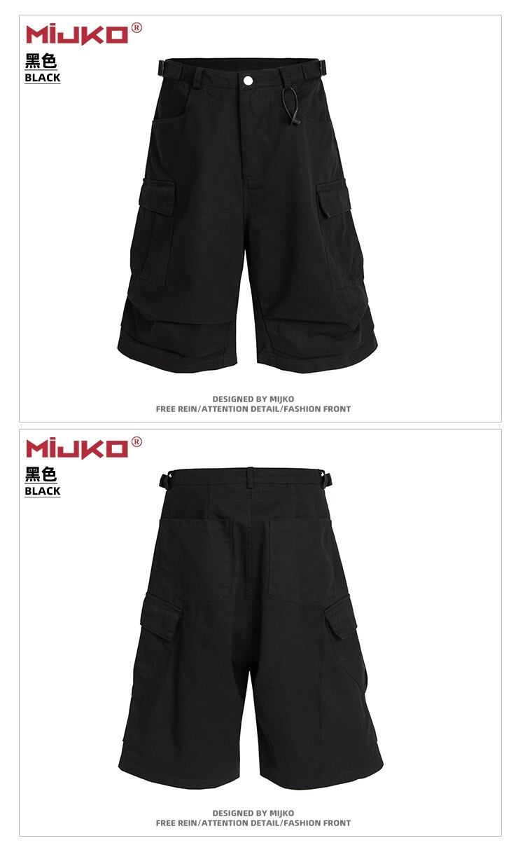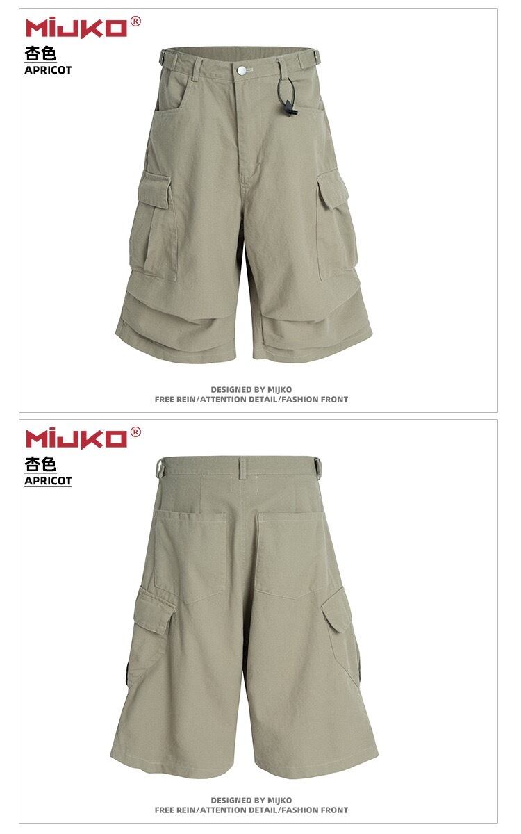 【MIJKO】 Casual Over-the-Knee Pleated Multiple-Pocket Cropped Half Pants