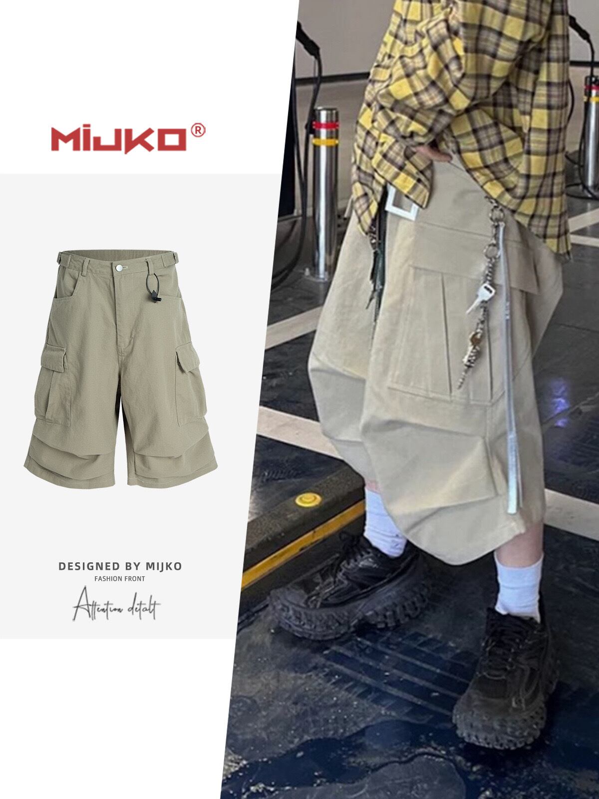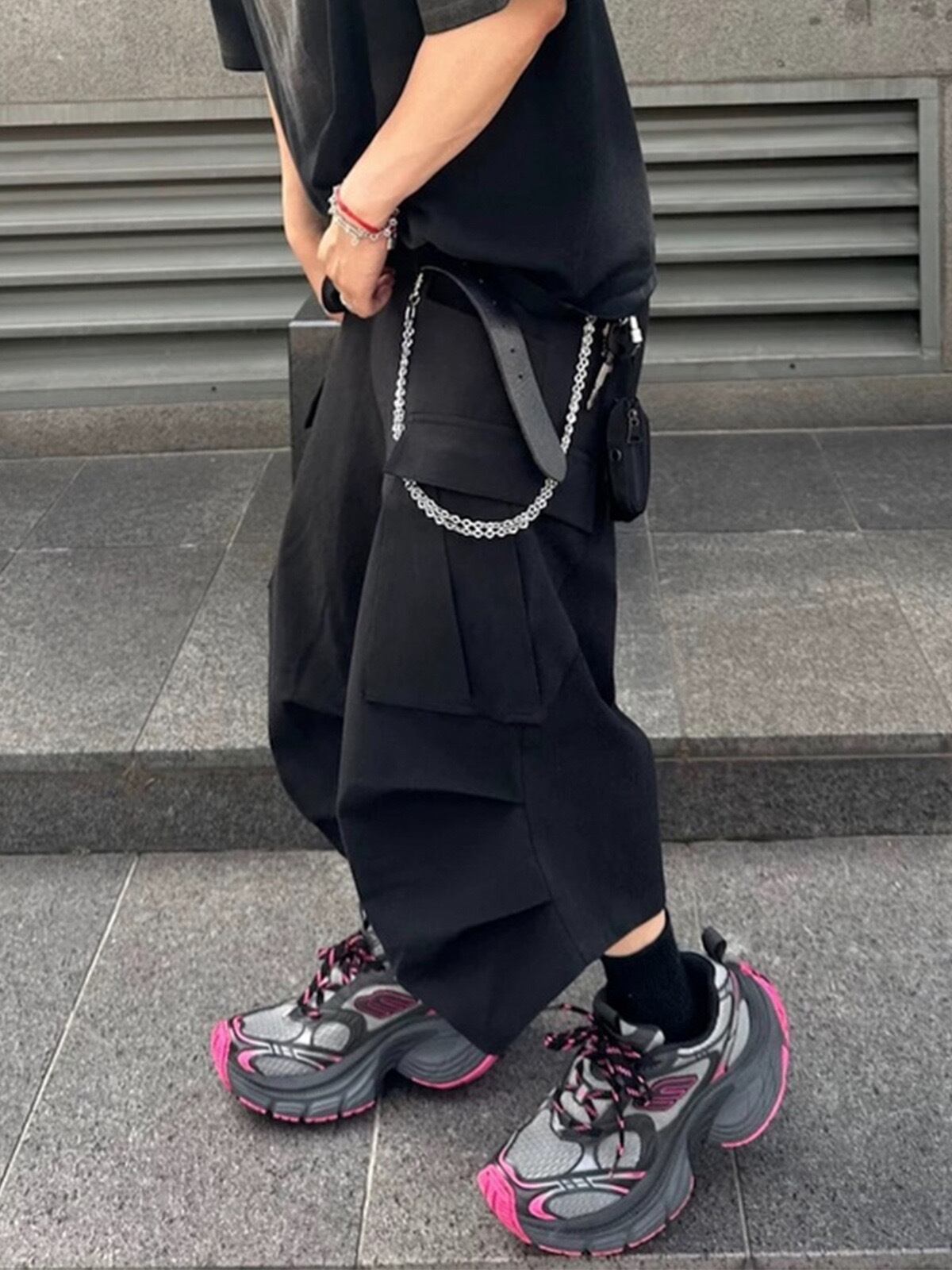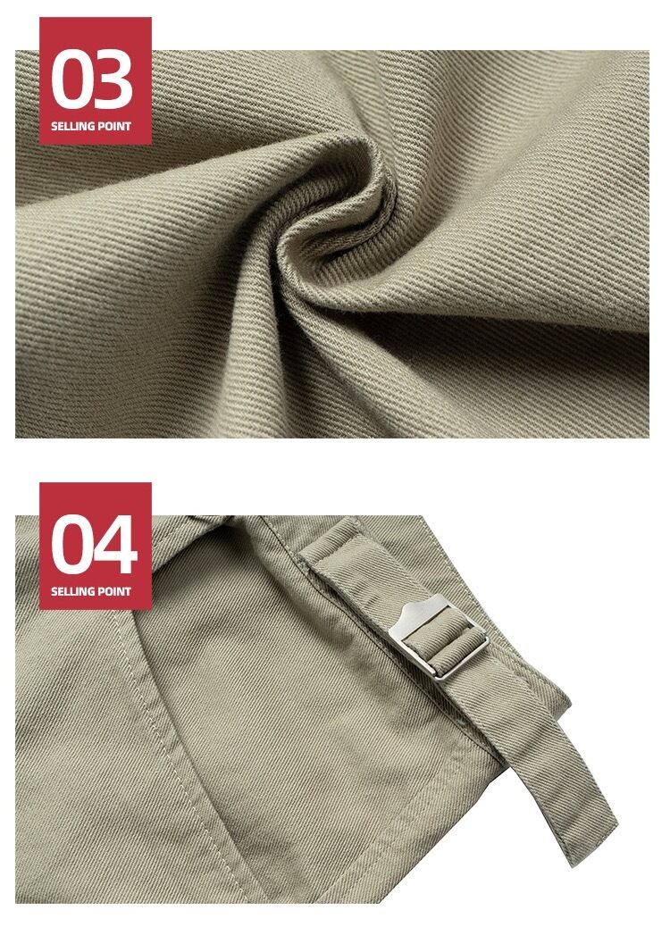 【MIJKO】 Casual Over-the-Knee Pleated Multiple-Pocket Cropped Half Pants